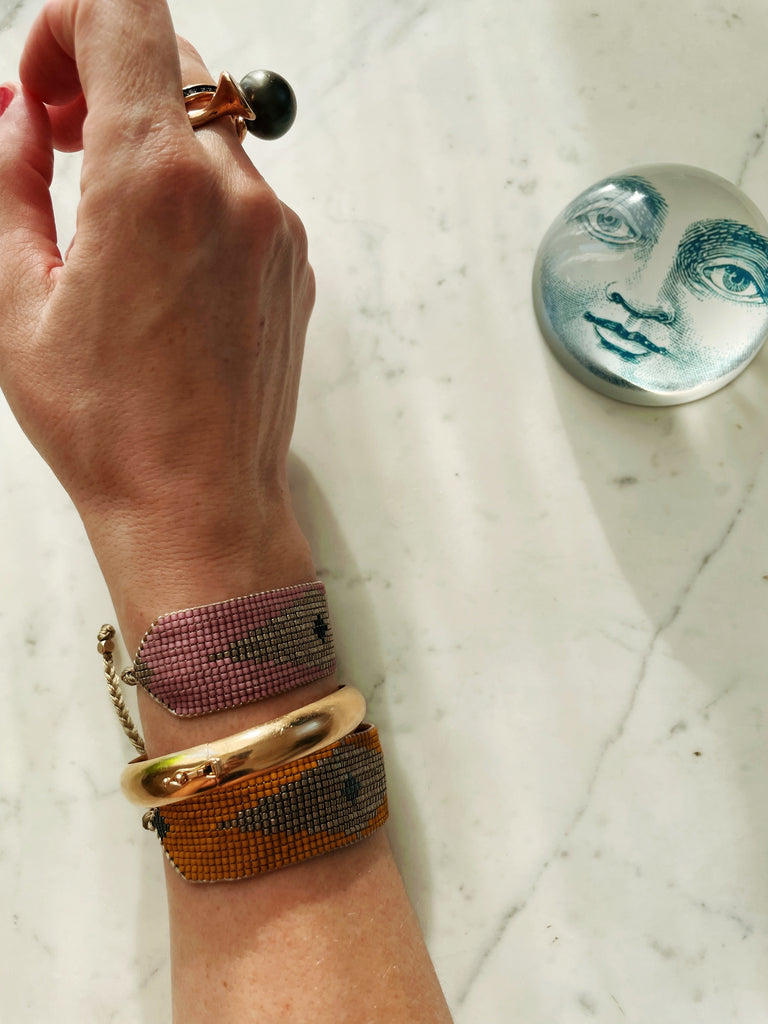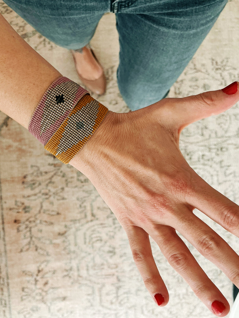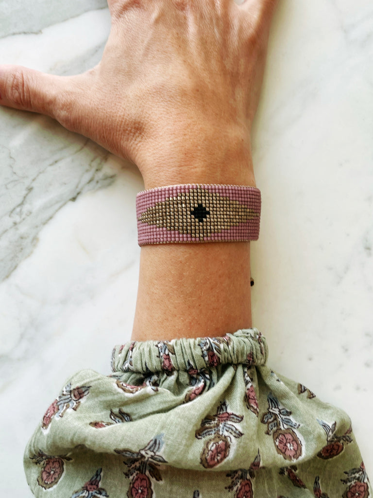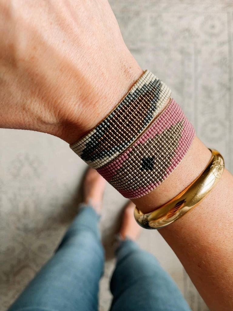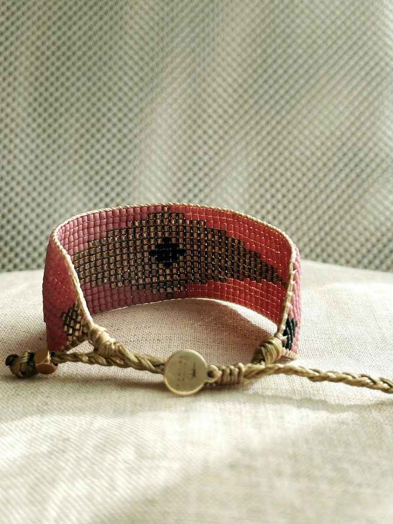 Handwoven bracelet made with tiny glass Japanese beads. These are high-quality beads, very soft and regular. The result is a light and smooth bracelet, really comfortable to wear.