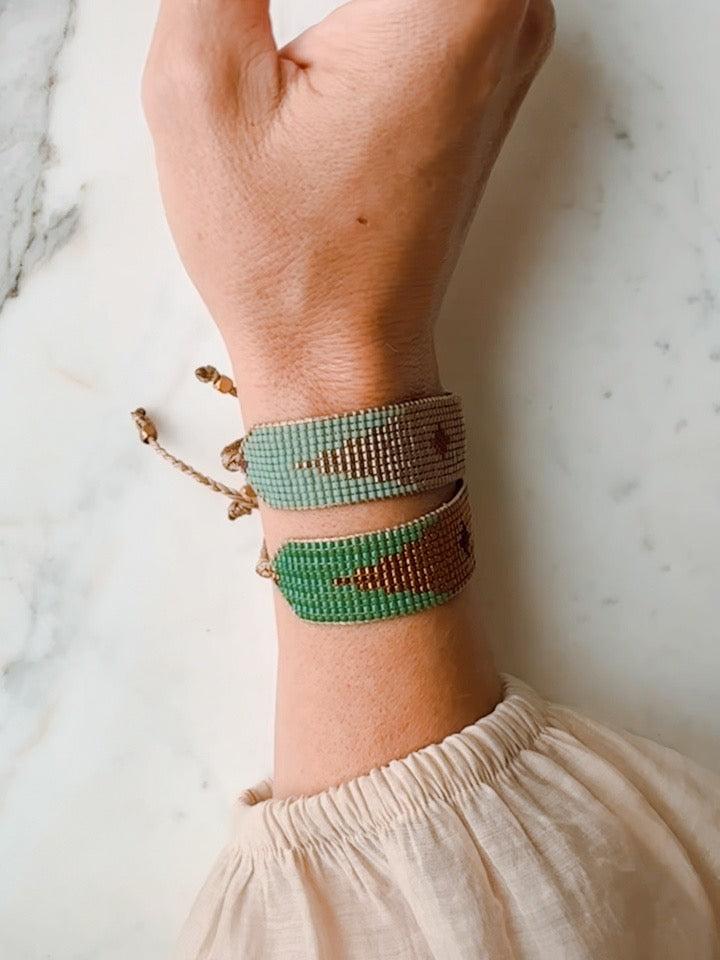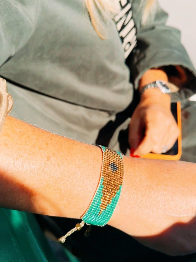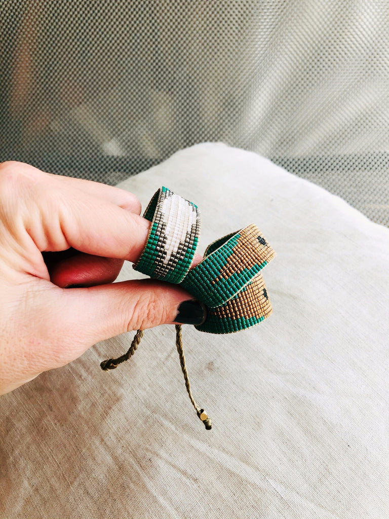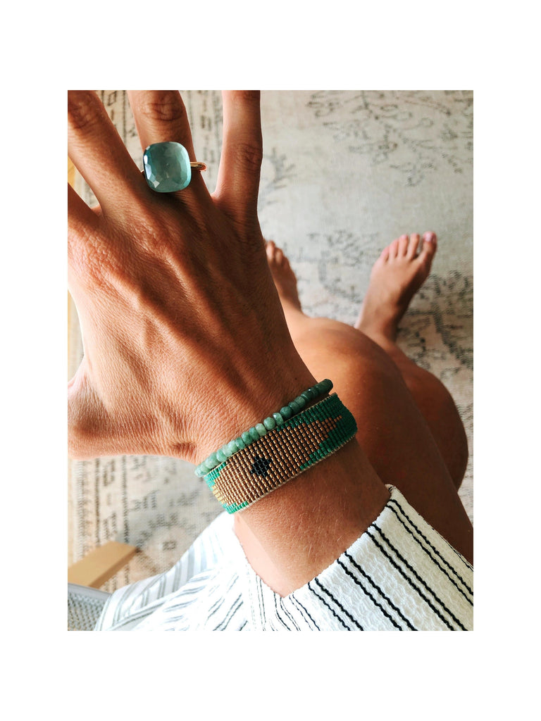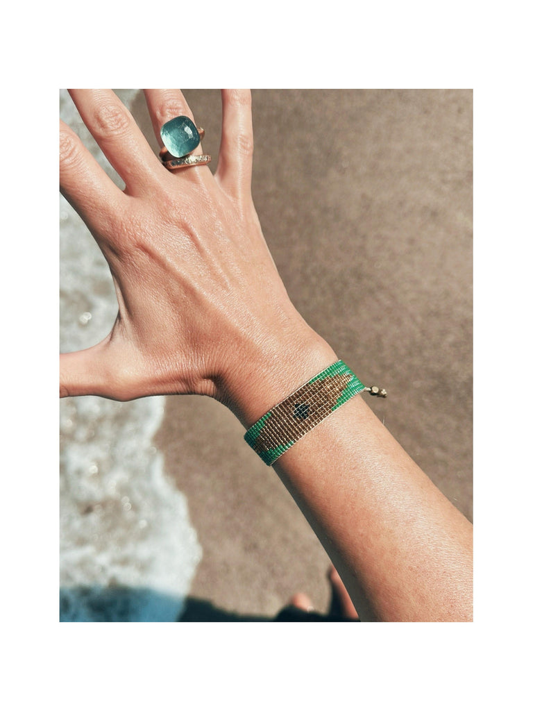 Handwoven bracelet made with tiny glass Japanese beads. These are high-quality beads, very soft and regular. The result is a light and smooth bracelet, really comfortable to wear.