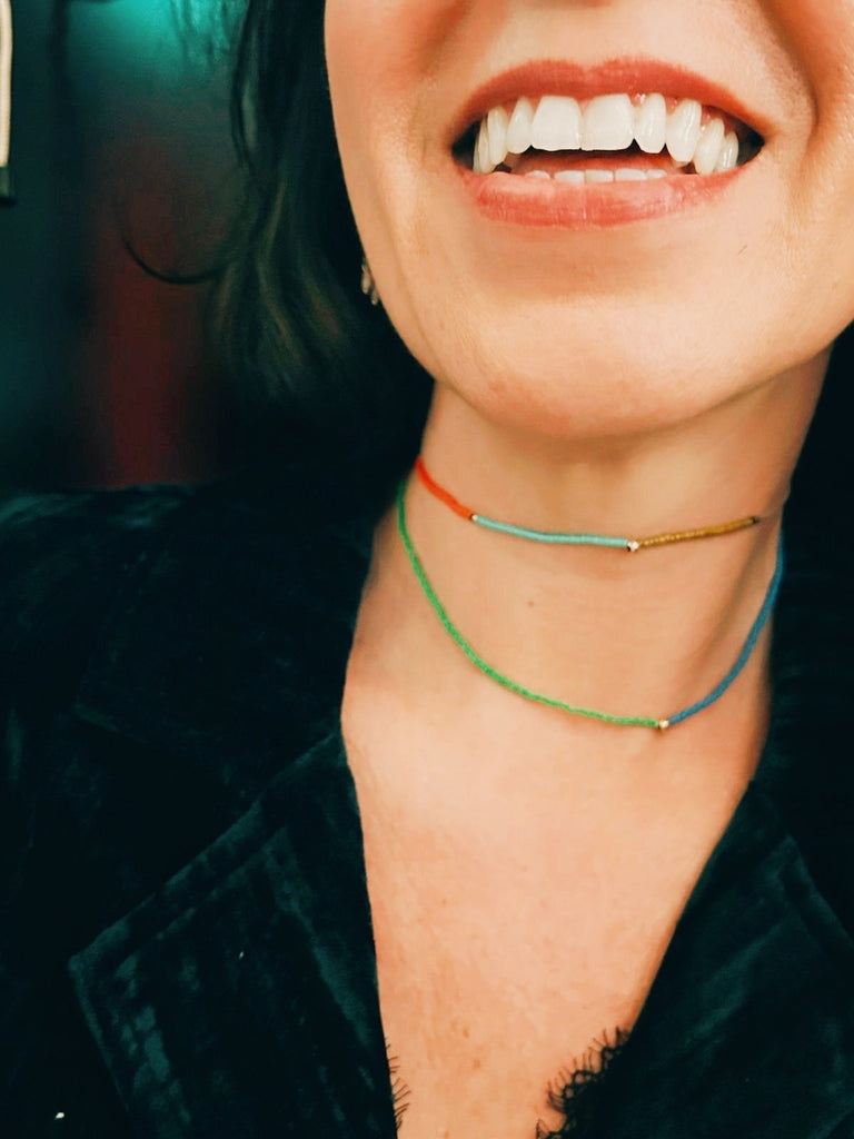 Check out our new stretchy necklaces: they fit like a dream around your neck and double as cool bracelets! Just slip them on, wrap them around, and rock that style. It's not just jewelry – it's a whole vibe!