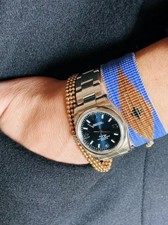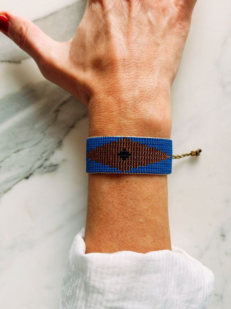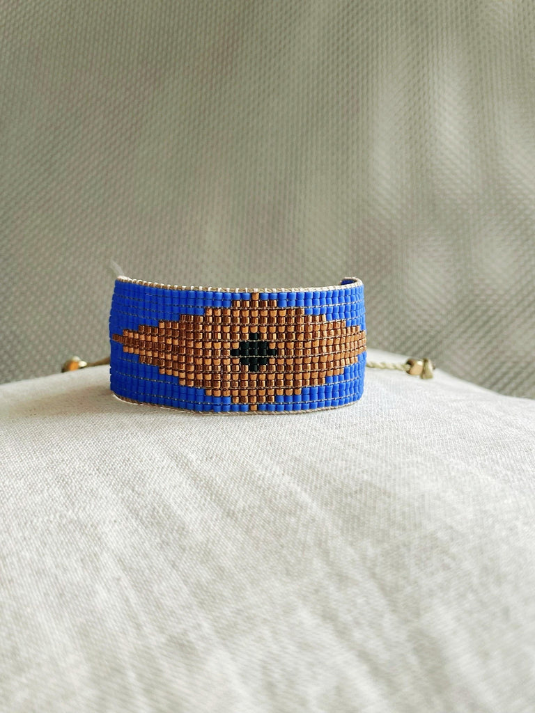 Handwoven bracelet made with tiny glass Japanese beads. These are high-quality beads, very soft and regular. The result is a light and smooth bracelet, really comfortable to wear.