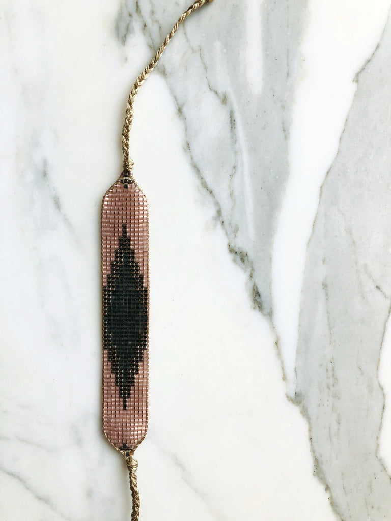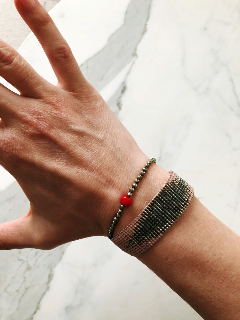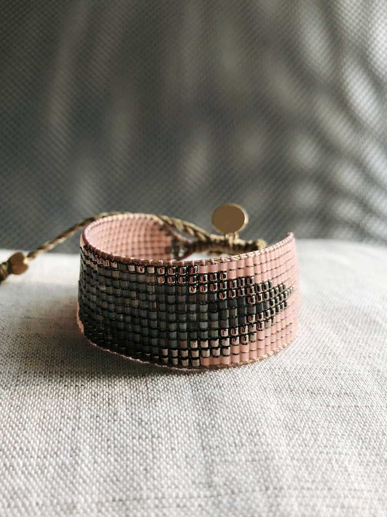 Handwoven bracelet made with tiny glass Japanese beads. These are high-quality beads, very soft and regular. The result is a light and smooth bracelet, really comfortable to wear.