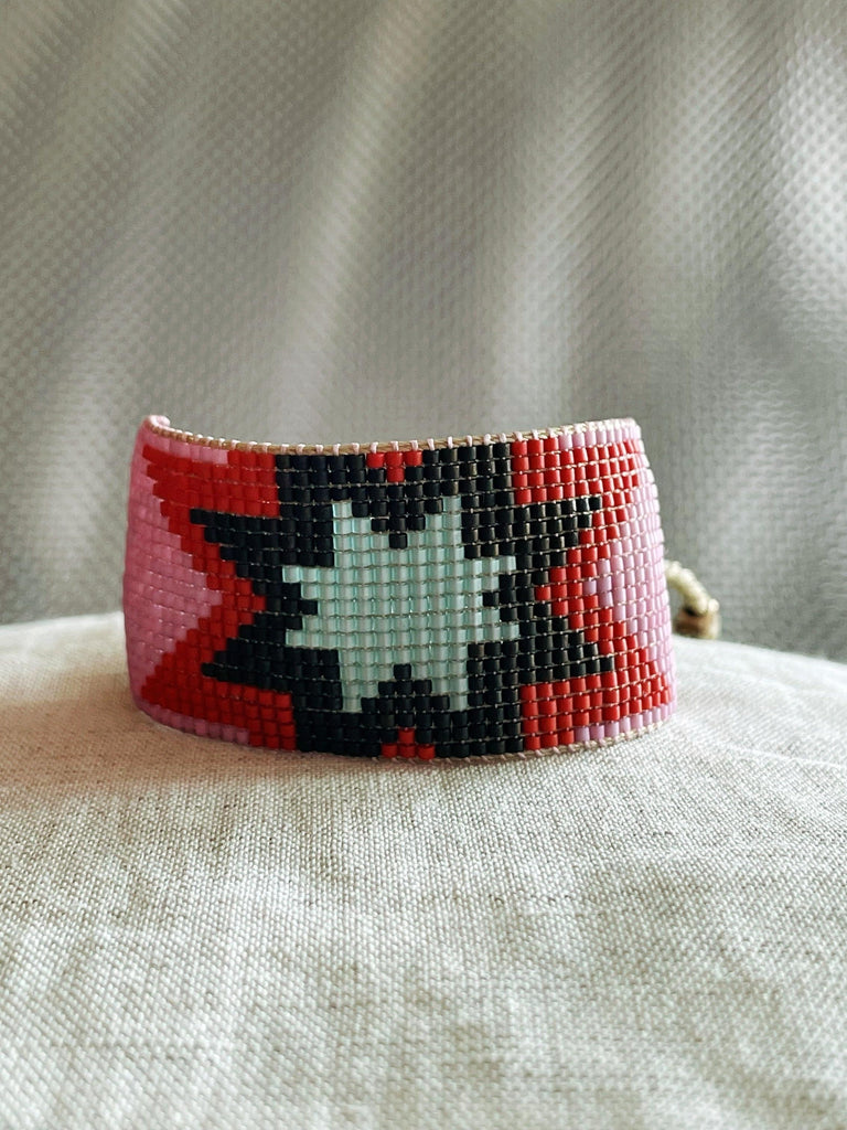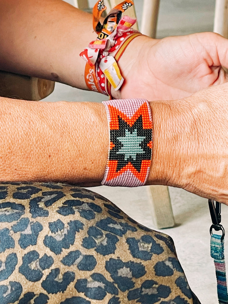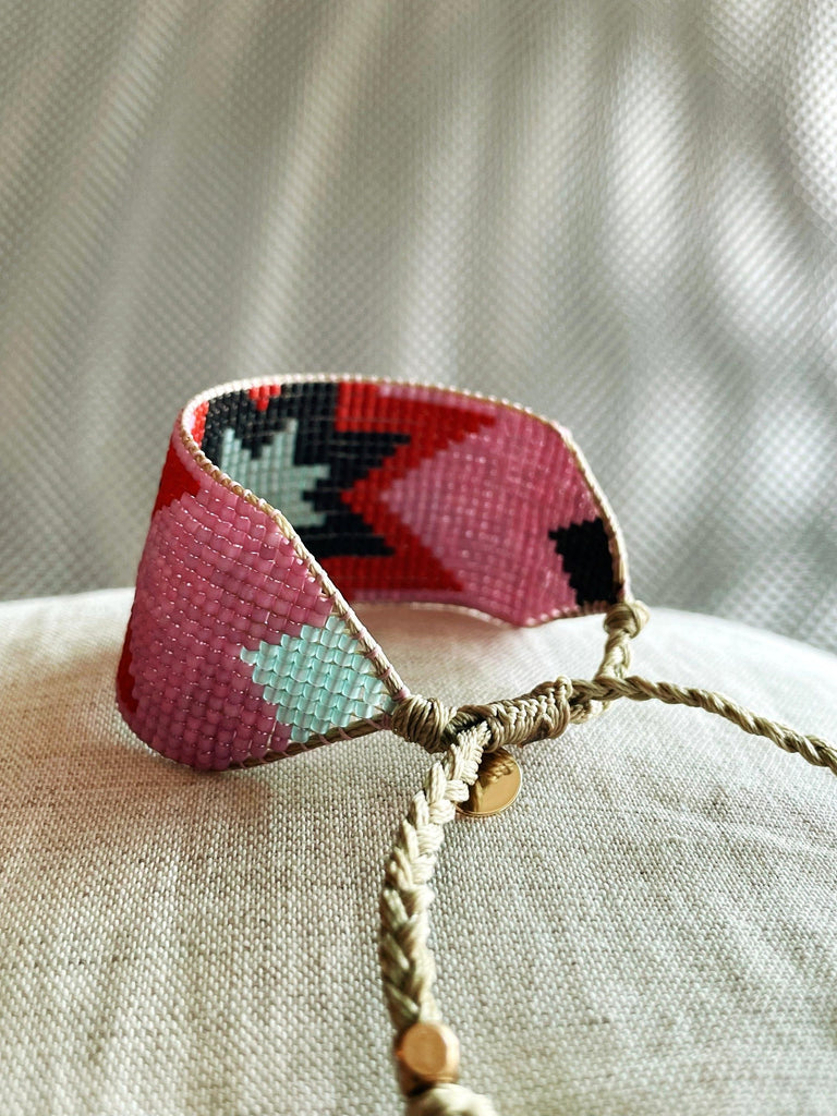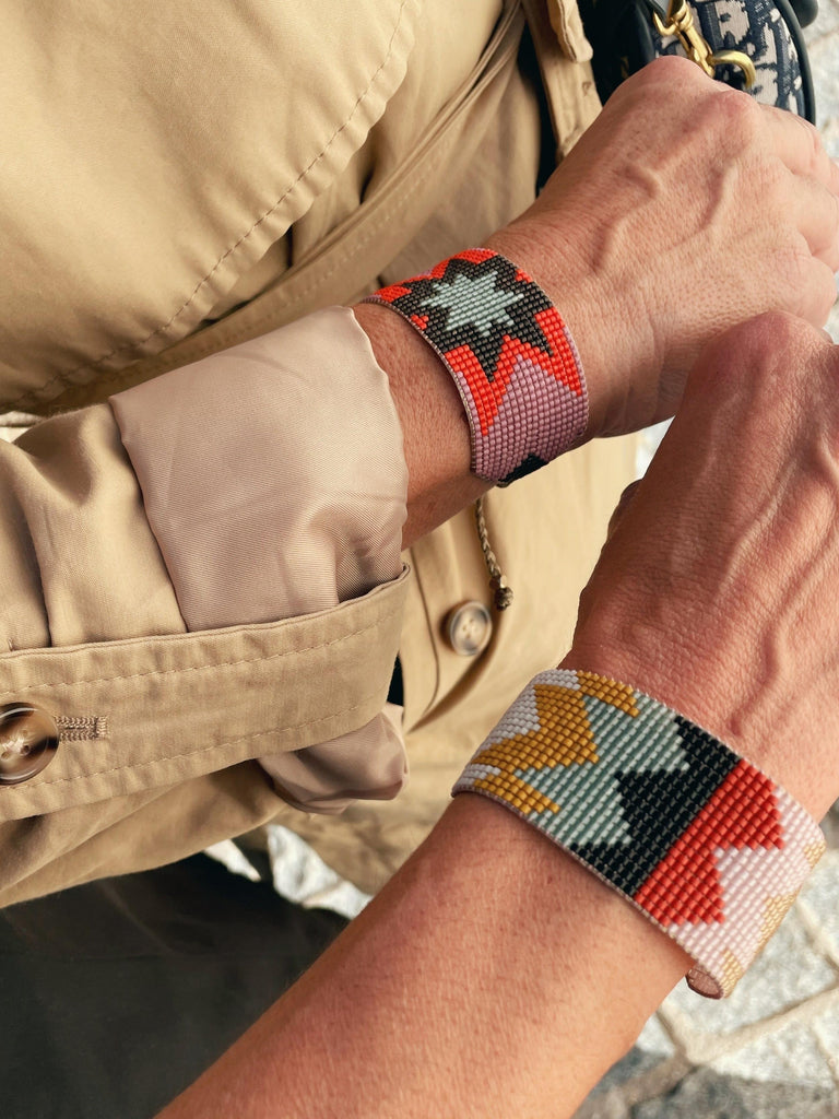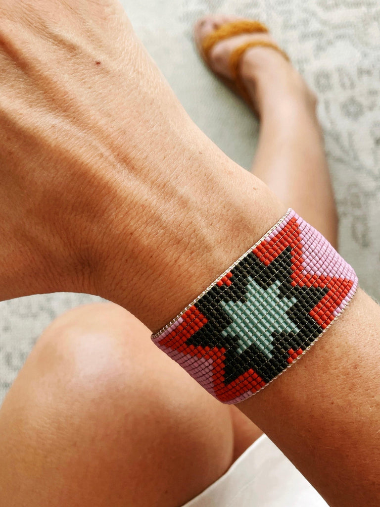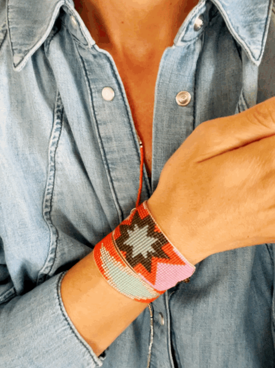 Handwoven bracelet made with tiny glass Japanese beads. These are high-quality beads, very soft, and regular. The result is a light and smooth bracelet, really comfortable to wear.