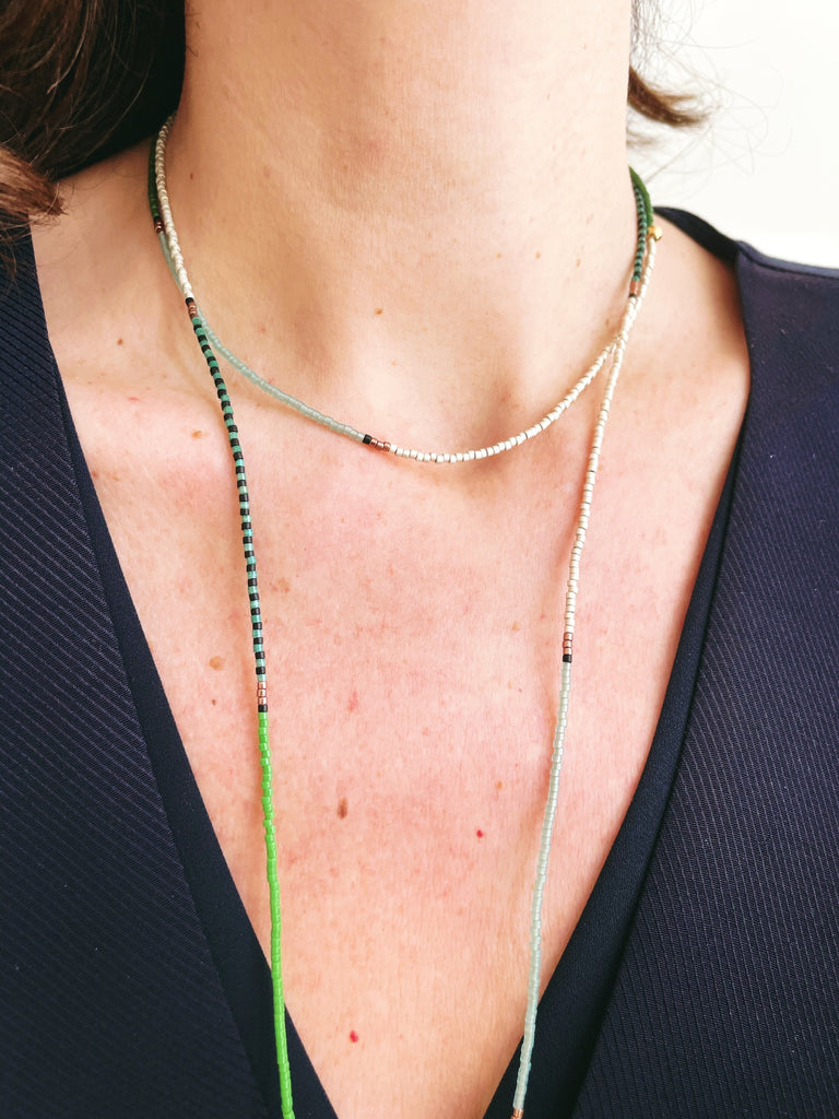 Made with tiny colorful glass Japanese Miyuki beads.