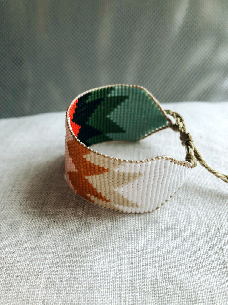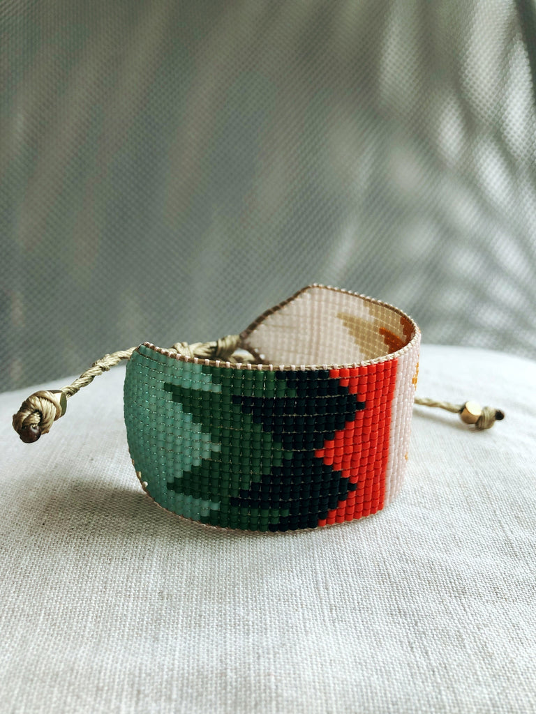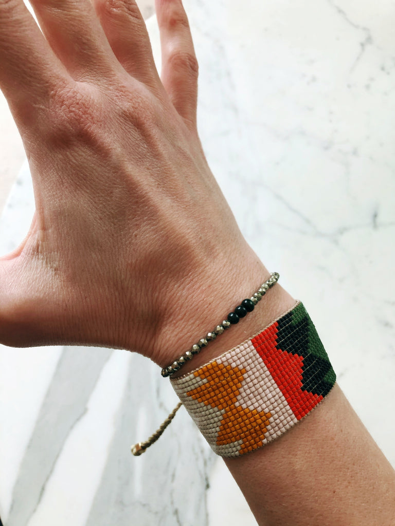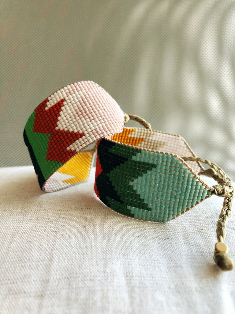 Handwoven bracelet made with tiny glass Japanese beads. These are high-quality beads, very soft and regular. The result is a light and smooth bracelet, really comfortable to wear.